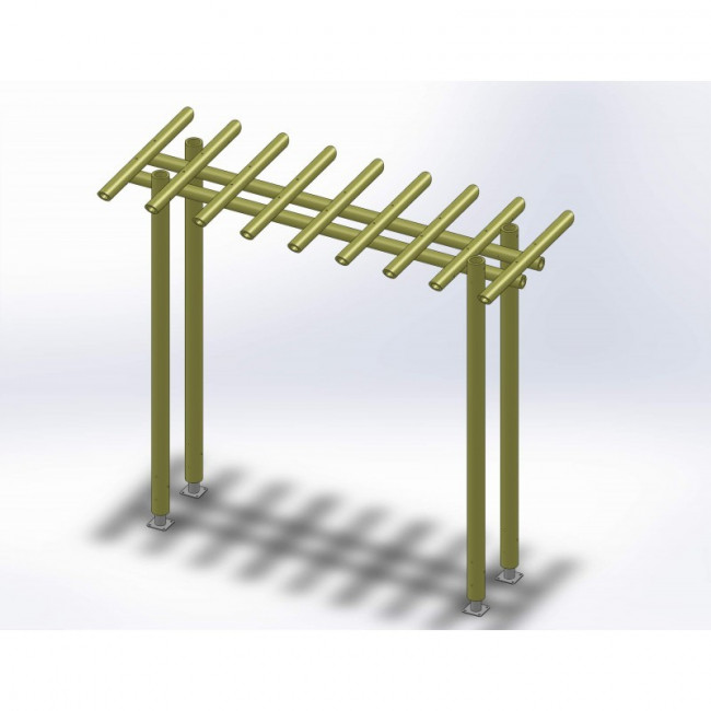 - Mâts de soutien prêts à poser sur lesquels viennent s’arrimer les longerons supérieurs proposés