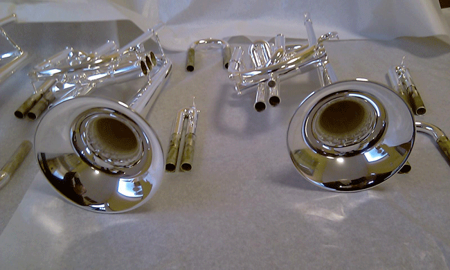 J"ai une trompette Bach vernie argent, achetée neuve 2010. Mais je voudrais la faire plaquer argent véritable, car le vernis s’oxyde + un débosselage