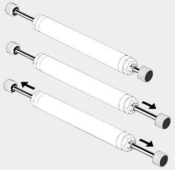 Les amortisseurs pour portes coulissantes ZDH sont prévus pour amortir des deux côtés, des masses ayant des vitesses jusqu'à 2,0 m/s. Avec seulement un amortisseur, une porte coulissante est amortie dans les deux positions finales. L'amortisseur est fixé sur la porte, installant en même temps des butées dans les deux positions finales.