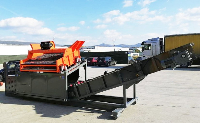 - Crible vibrant sur berce avec convoyeur