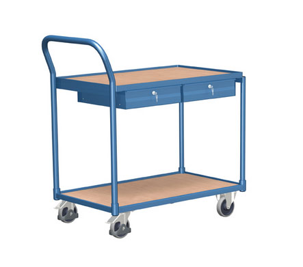 chariot modulaire est équipé de 2 plateaux et 2 tiroirs, il est trés pratique pour le déplacemet de votre marchansise en usine, atelier ou autre
