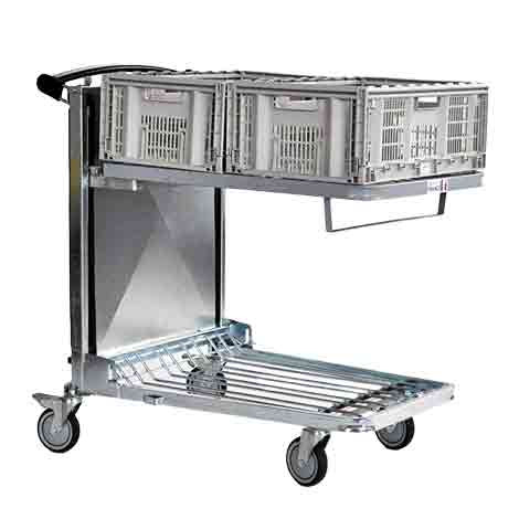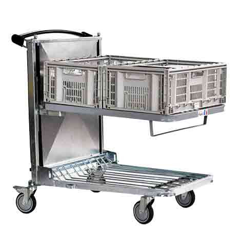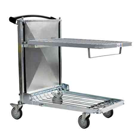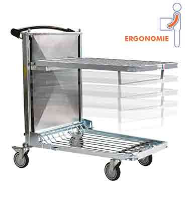 Ce chariot est équipé d’un plateau grillagé à fond remontant avec une surface utile de 800 x 600 mm.