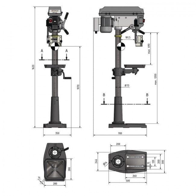 - Largeur de la table de perçage : 280 mm