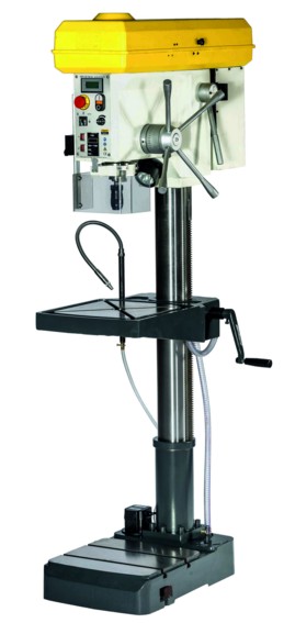 Perceuse taraudeuse à colonne à descente micrométrique.
