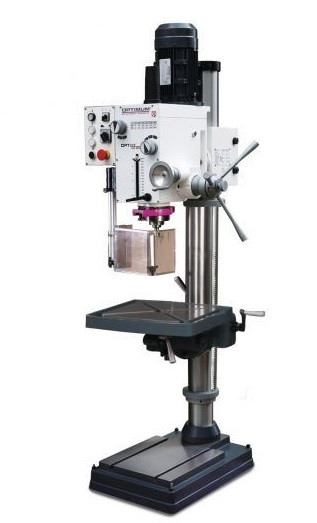 Cette perceuse à colonne avec boîte mécanique dispose d'une capacité de perçage dans l'acier de 32 mm.