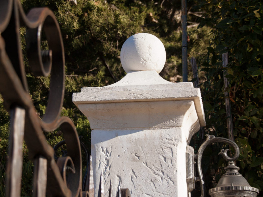 Le pilier de portail "Provençal" en pierre reconstituée avec chapeau boule incarne l'élégance rustique tout en offrant une robustesse remarquable.