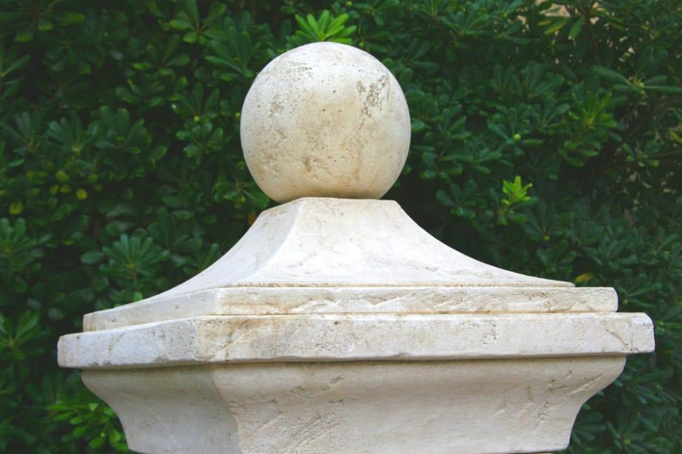 Le pilier de portail en pierre reconstituée avec chapeau boule incarne l'élégance rustique tout en offrant une robustesse remarquable.