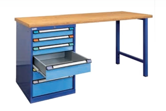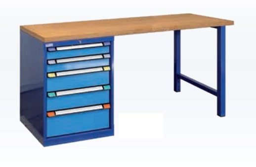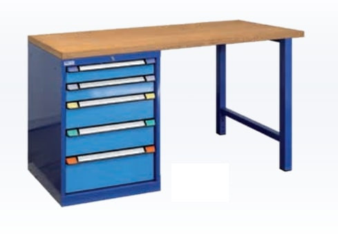 1 pied d’établi et 1 armoire à tiroirs avec 5 tiroirs