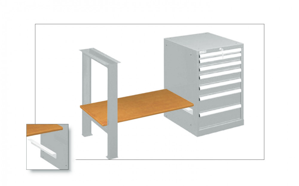 - Hauteurs standard (Pied d'établi) : 800, 850 mm ou à hauteur réglable de 750 à 1050 mm (par pas de 25 mm).