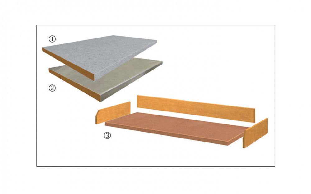 Entretoise d’établi : Tablettes de rangement : Couverture en acier galvanisé et CNS, parois arrière et latérales :