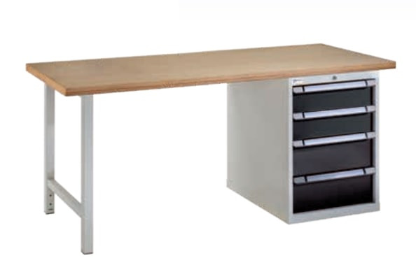 1 pied d’établi, 1 armoire à tiroirs avec 4 tiroirs (2x150, 2x200mm)