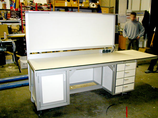 - Présence de 4 tiroirs sur le côté droit du poste et d'un meuble pour ranger les documents et autres outils.