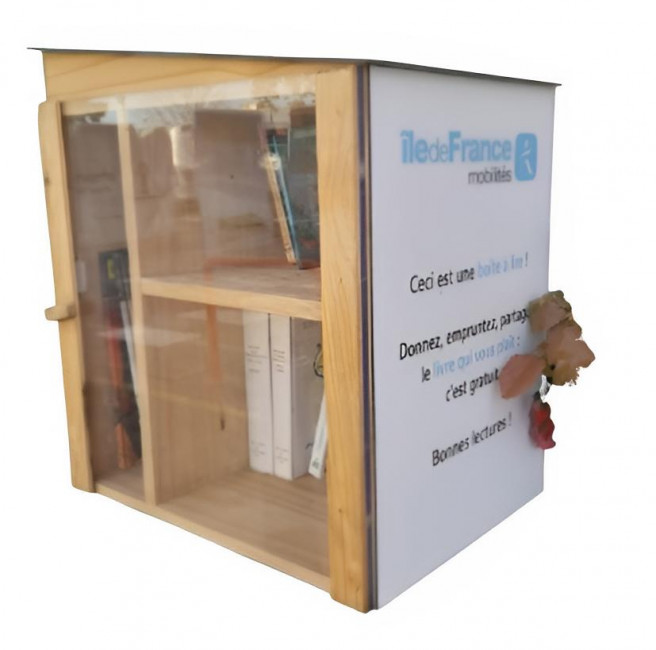 Parce que chaque lieu est unique, notre boîte à livres en bois pin est personnalisable.