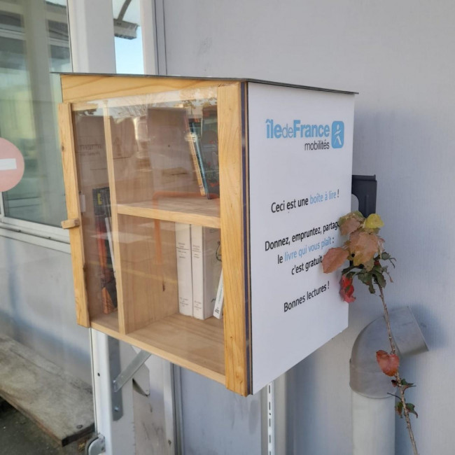 Conçue comme une micro-bibliothèque solidaire, elle permet à chacun de déposer et d’emprunter des ouvrages librement.