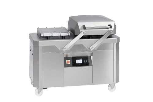 Grâce à ses deux chambres et son système de couvercle pivotant, il permet un travail continu sans interruption : pendant que l'une des chambres emballe sous vide, l'autre est déjà prête pour le prochain chargement.