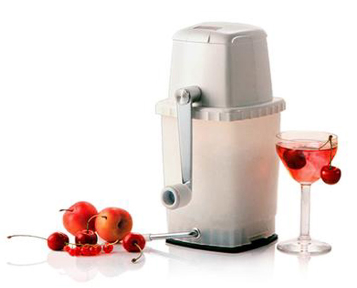Ensuite, tourner la manivelle et les glaçons sont broyés en tombant en glace pilée dans la partie inférieure de l'appareil.