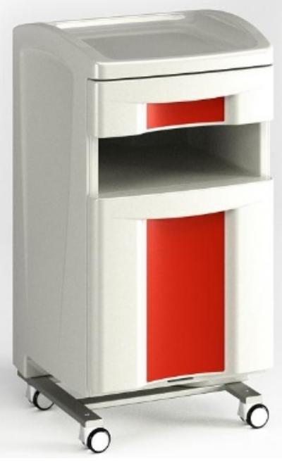 Ce guéridon médical étanche et monté sur 4 roulettes (dont 2 à freins) est composé de :