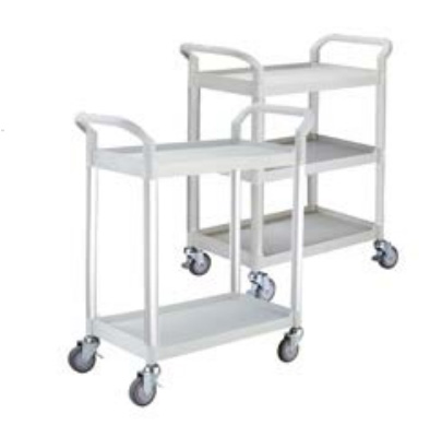 chariot médical est doté de 2 ou 3 plateaux polypropylène et d'un fibre de verre d'une épaisseur de 15 mm avec rebord de 3 mm.