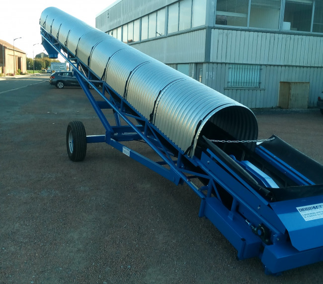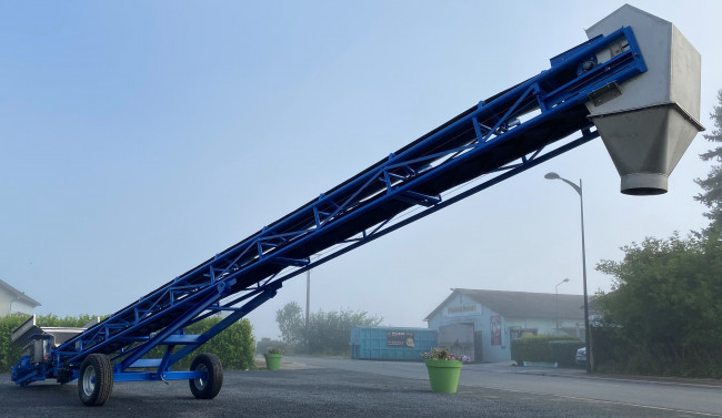 27/03/2026je recherche Convoyeur sauterelle à bande inclinable avec un Trémie de réception inclinaison environ 20% hauteur 2m50 Max pour CONVOYER DU bois.