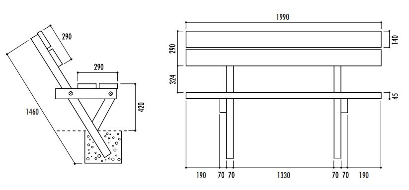 Demandes de devis pour Banc public en bois pin autoclave - longueur : 1990 mm - à sceller