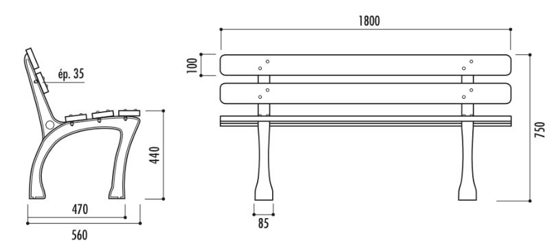 Le banc supporte aisément les usages intensifs des espaces publics, tout en conservant sa forme et sa solidité.