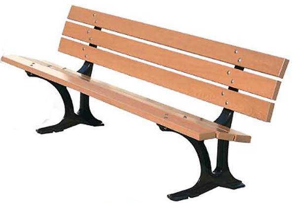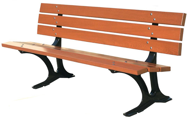 Avec Banc pieds fonte, lames bois, Pieds laqués brun par revêtement 100% polyester cuit à 200°.