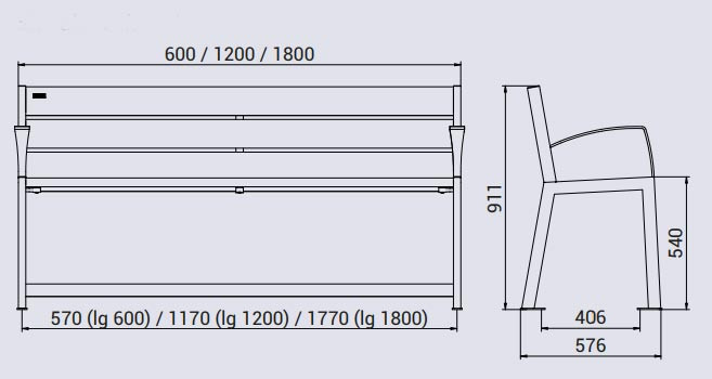- Longueur : 1800 mm - Assise et dossier en tôle acier galvanisée pliée, épaisseur 2 mm, largeur de lame 120 mm