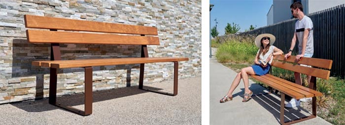 fourniture et la pose de bancs avec dossier en bois qui seront disposés autour des différents éléments du projet. Ce poste comprend le transport, le déchargement la réalisation de la fondation en béton, la pose soignée par chevilles béton sur massifs béton à réaliser suivant les prescriptions du fournisseur, et toutes sujétions de mise en œuvre et de manutention. Les bancs seront de type Atlantique et Atlantic simple de chez Aréa ou équivalent. Caractéristiques des bancs : Dimensions : 1600mm de longueur, profondeur 595mm Matériaux : Bois et métal thermolaqué noir Un produit devra faire l’objet d’une demande d’agrément à la maitrise d’œuvre pour validation avant toute commande et mise en place des produits.