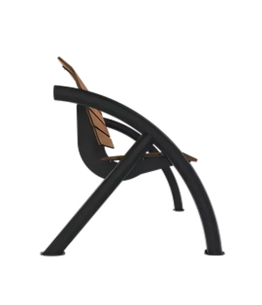 L’assise est conçue en compact HPL finition lames, pour associer résistance et rendu visuel chaleureux.