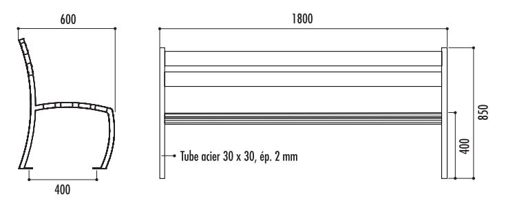 Le banc est livré prêt à monter. L’installation se fait par fixation à sceller.