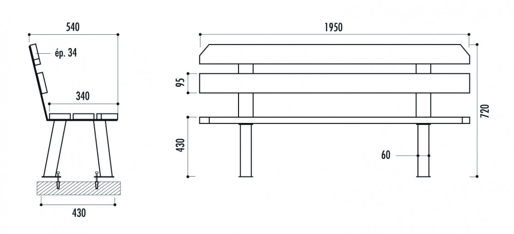 Ce banc d'extérieur en bois traité est un équipement urbain qui peut être installé dans les endroits publics et les jardins.