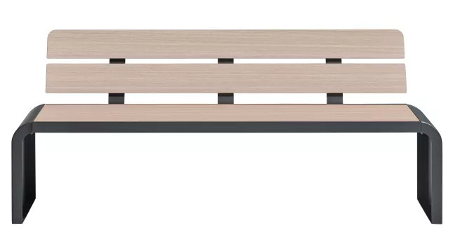 Un banc en acier et compact HPL pensé pour les espaces publics