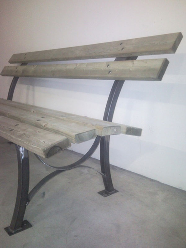 pieds en tubes profilés RAL gris « canon de fusil », lames bois.
