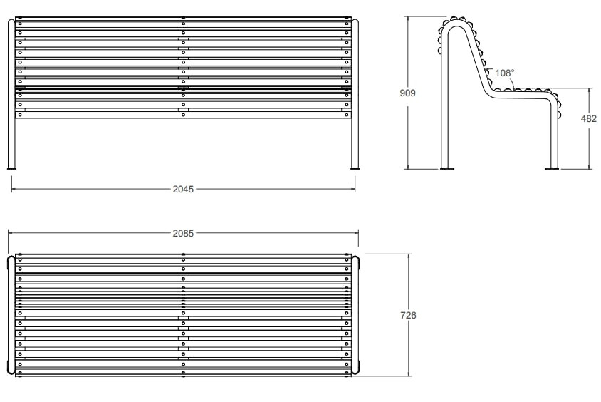 Il dispose d'une structure métallique de tube rond peinture RAL 9006 avec 23 lames en bois de Guinée.