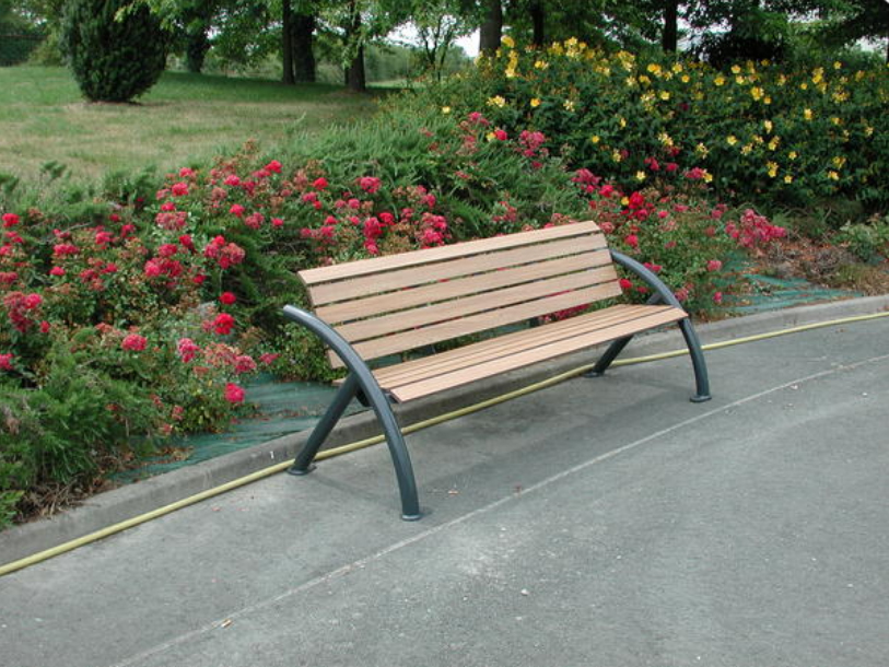 Cette combinaison métal/bois reconstitué facilite l’intégration autant dans des environnements paysagers (parcs, jardins publics) que dans des contextes plus minéraux (esplanades, zones commerciales, abords d’équipements publics).