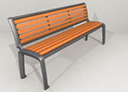 *Banc de 1900x582x850mm (LxlxH), assise : 470mm, cadre métallique, assise et dosseret en lattes de bois.