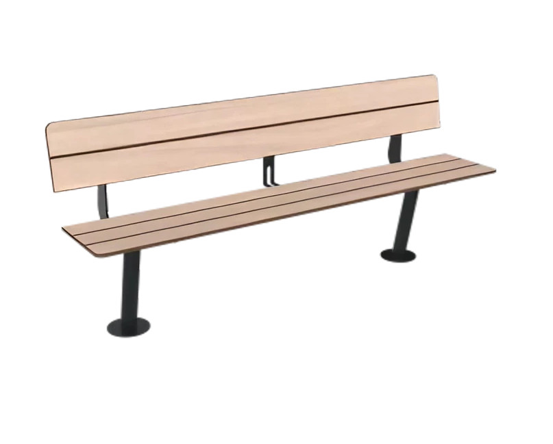 L’assise (et éventuellement le dossier) est réalisée en compact HPL finition effet lames, ce qui donne l’apparence chaleureuse d’un banc design effet lames bois tout en bénéficiant des performances du HPL (stabilité, résistance, faible entretien).