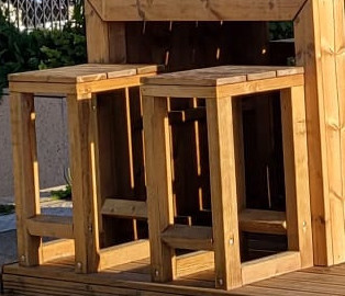 Cette gamme de produit est idéale pour les collectivités, les parcs publics ou encore l’hôtellerie de plein air (HPA). En pin classe IV, nos tabourets hauts peuvent rester toute l’année en extérieur.