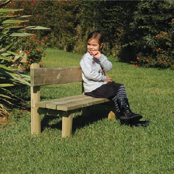 Ce banc de parc pour aire de jeux pour enfants réalisé en bois de pin nordique imprégné en autoclave avec des sels atoxiques.