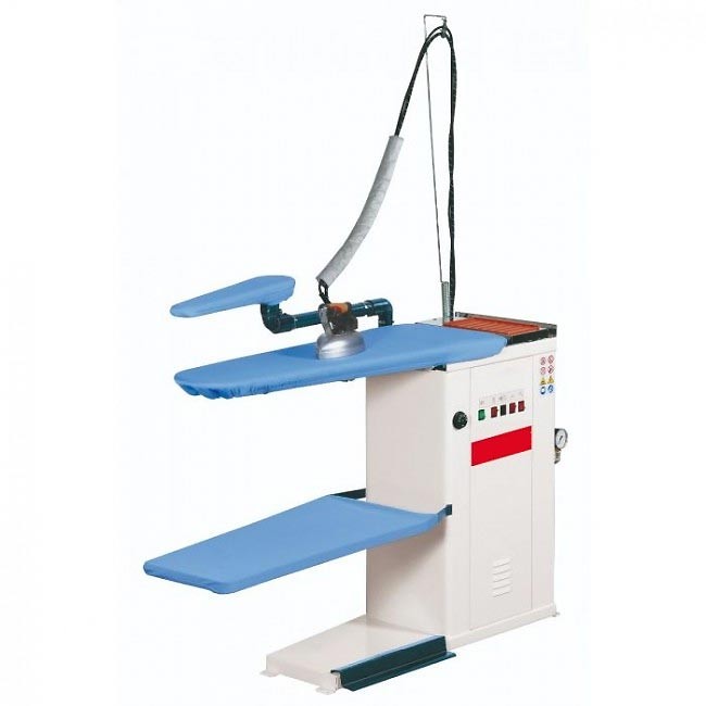 Table aspirante et soufflante, chauffée électriquement, disponible aussi bien avec une chaudière électronique de 5 l qu’avec un agencement pour le branchement à une source de vapeur.