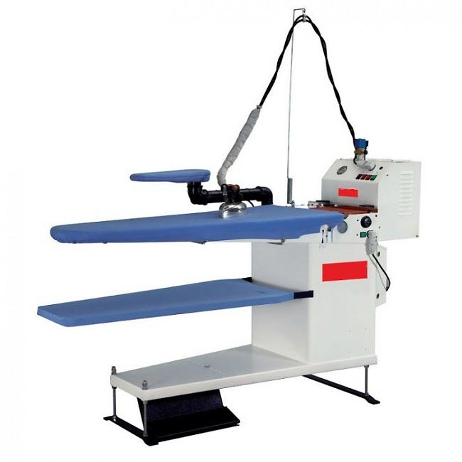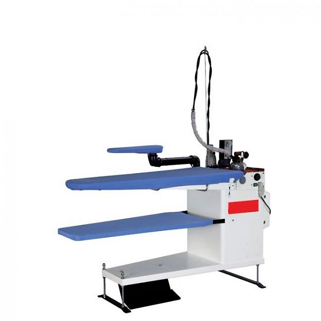 Classic R avec surface rectangulaire (dim. surface 1300 x 650 mm) Possibilité de repasser des deux côtés de la table. Agencement pour 2 bras pour jeannettes.