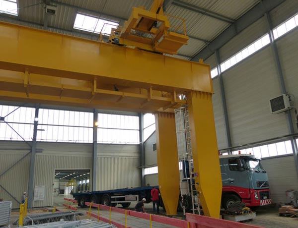 Roulant sur Rail Hauteur 8 m sous crochet. portée 7m. Capacité charge 30 tonnes.