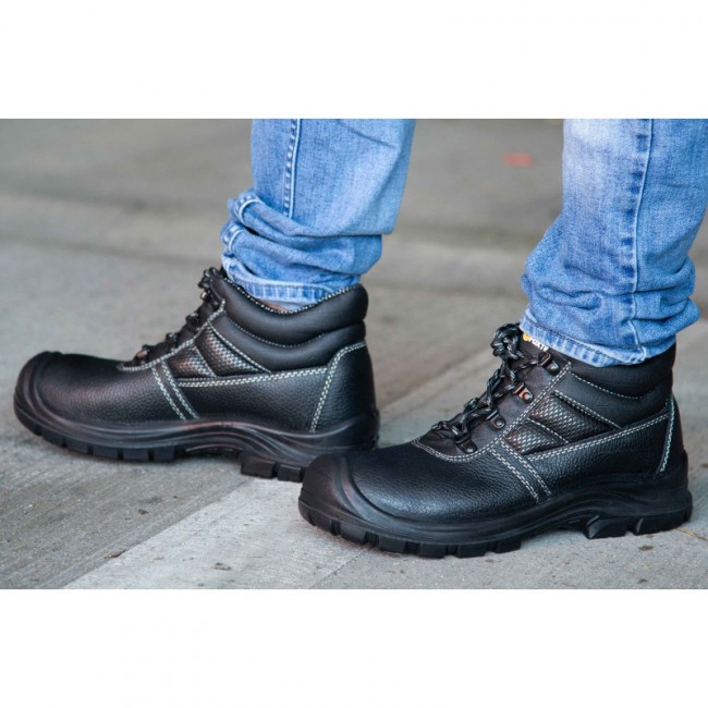 Tige composée en cuir grainé hydrofuge ce qui apporte un maximum de protection avec cette chaussure de sécurité !