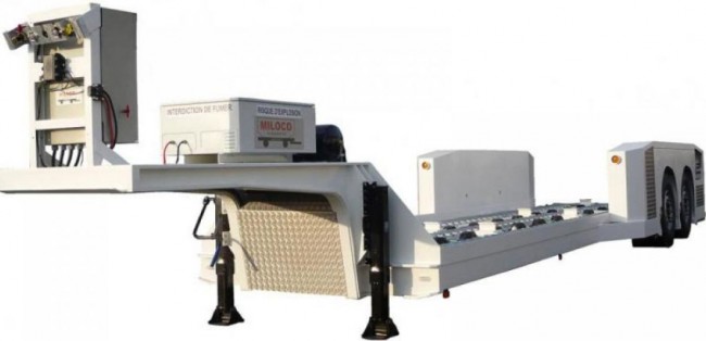 La semi remorque pour transport fret sur palette ou conteneur aéronautique est d'une charge utile de 21 tonnes pour une hauteur de chargement de 508 mm.
