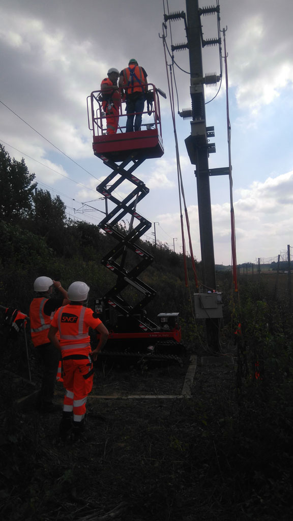 14/11/2024Nacelle ciseaux tout terrain pour tailler des haies.