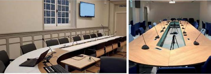 Faites votre choix parmi notre mobilier, nos conférenciers, nos écrans d’affichage, notre système de caméra d’enregistrement pour enregistrer et diffuser vos réunions à tout moment.