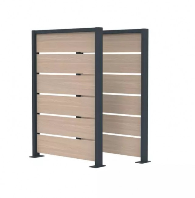 Composé de deux modules ajourés et de poteaux en acier traité anti-corrosion et poudré anti-UV, ce cache conteneur garantit une stabilité et une grande résistance aux intempéries.