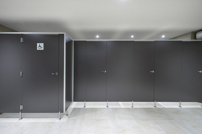 Fabriquées avec des panneaux stratifiés massifs de 12-13 mm, les cabines garantissent une résistance exceptionnelle aux chocs, aux rayures et à l'humidité.
