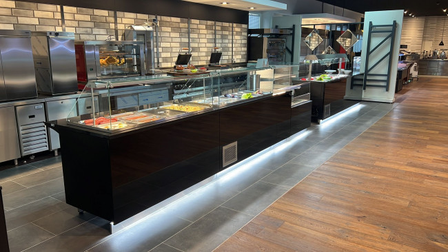 31/03/2023suite à un achat, je souhaiterai refaire l"agencement du restaurant. activité vente à emporter (90% de la clientèle, thème ASIE) Surface commerciale de 35m² composée de deux comptoirs en forme de L un pour les plats chauds l"autre pour les salades et desserts avec meuble frigorifique de 3 portes surmonté d"une vitrine actuellement, Merci.