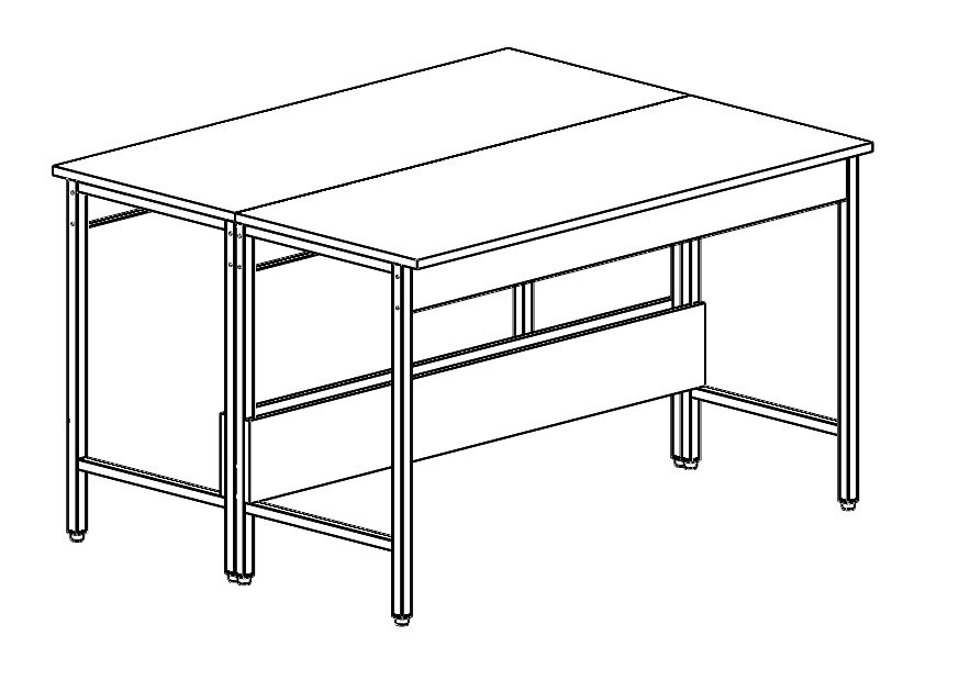 Cette paillasse centrale nue fournit un plan de travail accessible de tous les côtés.